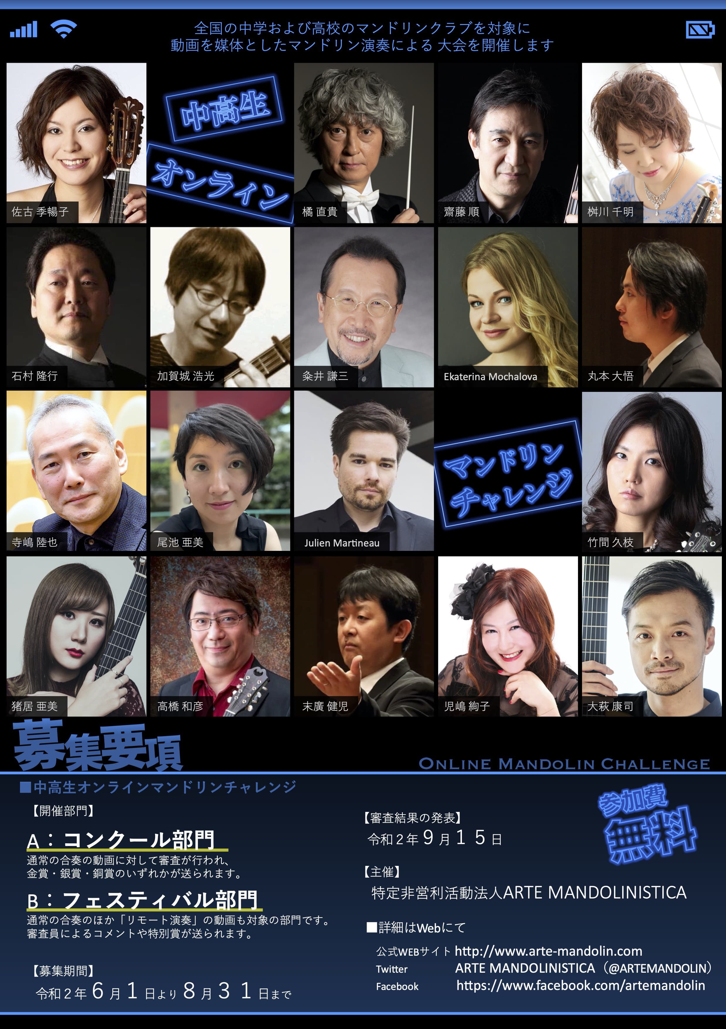 動画を媒体としたマンドリン演奏による大会を開催します。