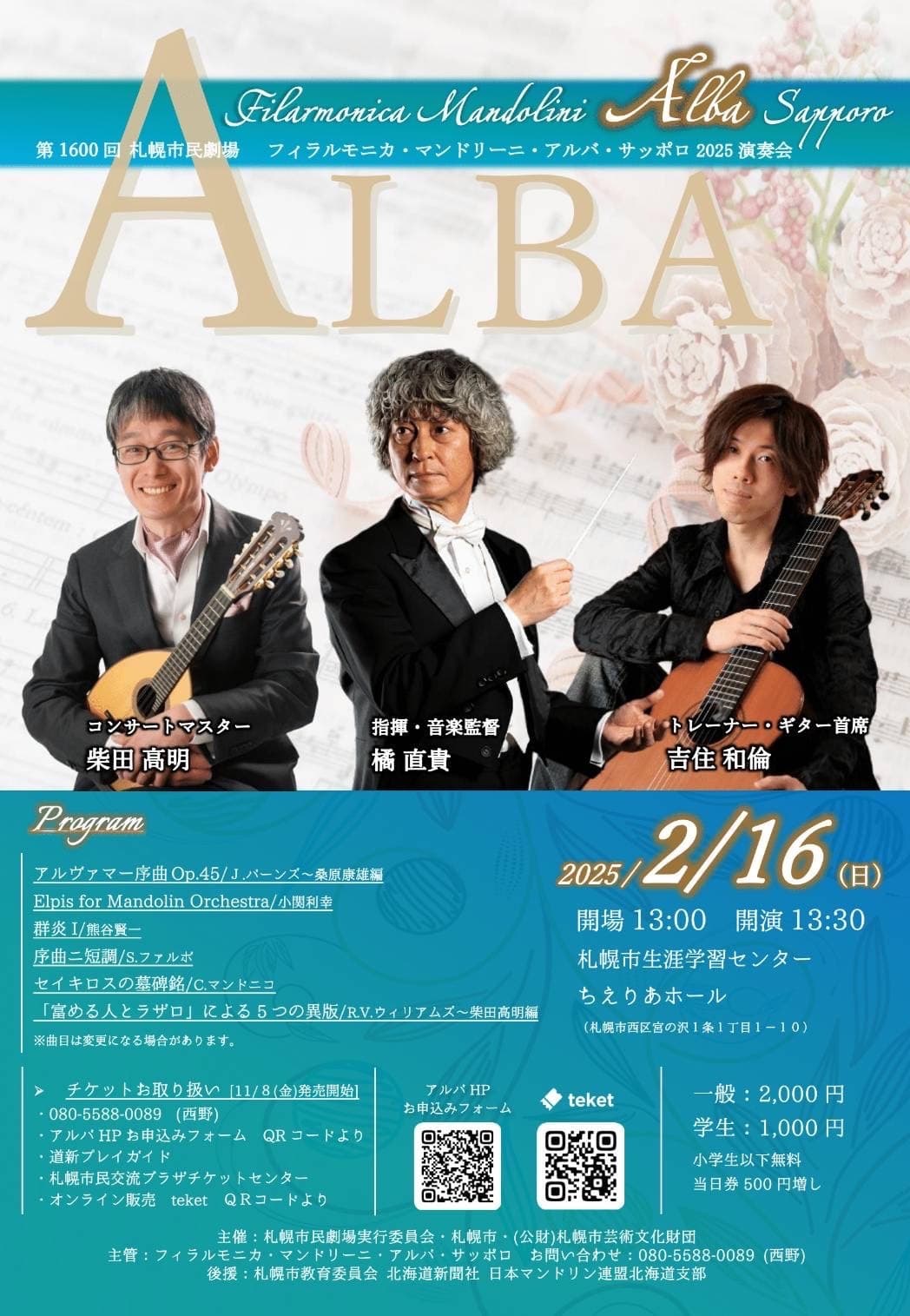 後援/札幌市教育員会、北海道新聞社、日本マンドリン連盟北海道支部