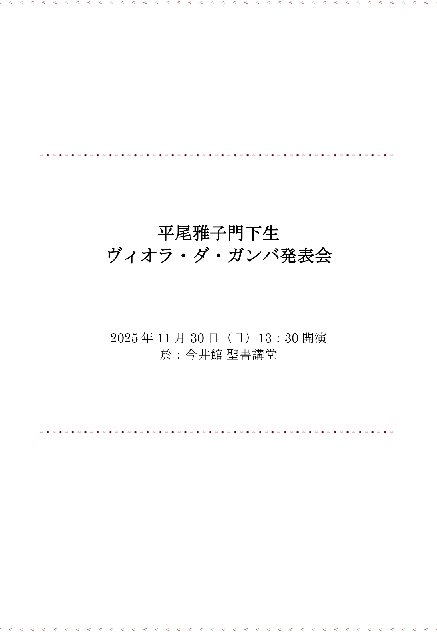 日程/2025年11月30日(日)13:30開演(13:20開場)